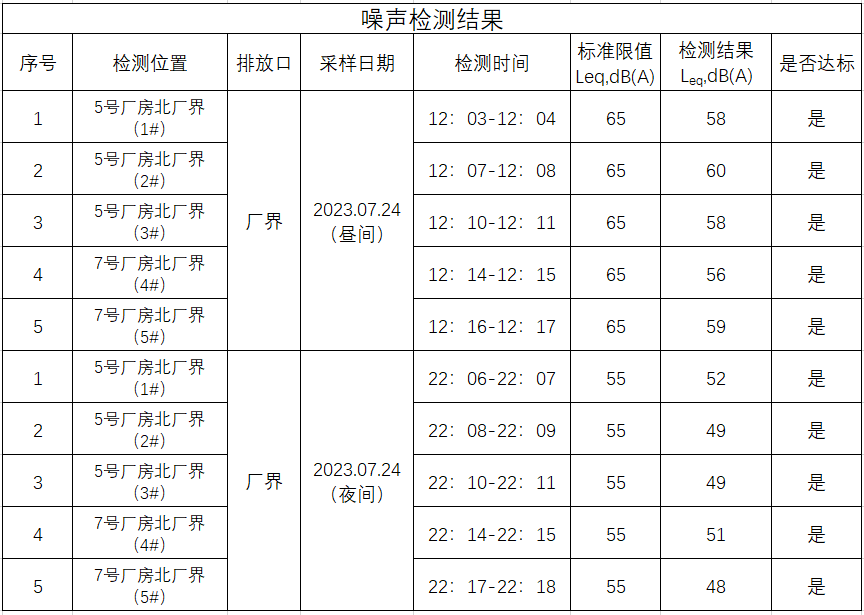 2023年三季度噪声检测结果