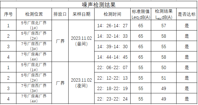 2023年四季度噪声检测结果