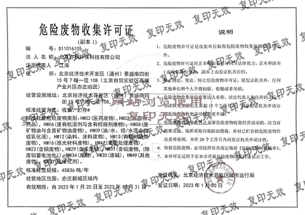 危险废物收集许可证